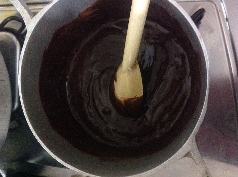 3- Derreter a barra de chocolate e acrescentar 1 caixa de creme de leite.